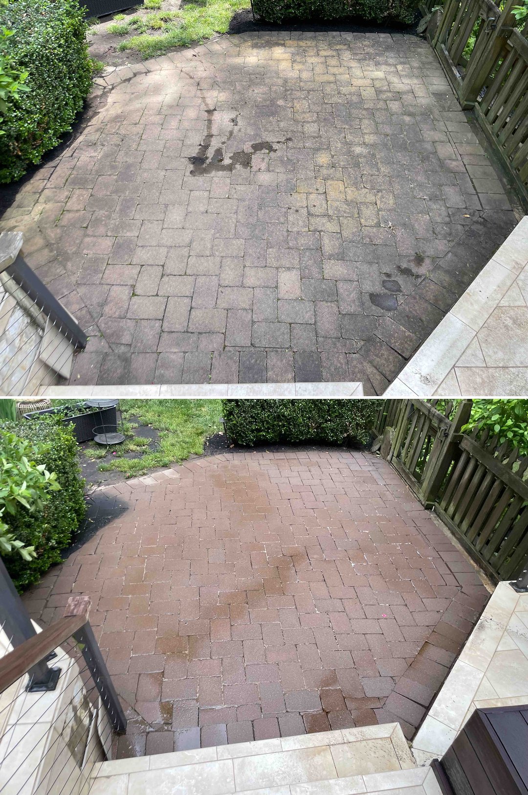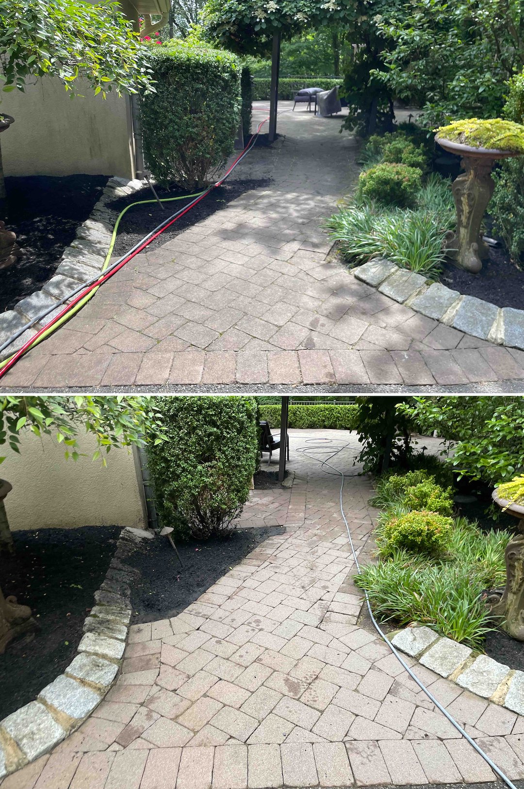 While Ipe restoration was the technical focus, we also addressed the property’s hardscapes. The older paver walkways had a heavy bio-film of algae that made the paths dangerously slippery. We executed a restorative cleaning process that combined a gentle soft wash with a controlled surface clean. This approach stripped away the decay without harming the masonry, restoring traction and bringing back the vibrancy of the stones so the family could safely use the outdoor paths again.