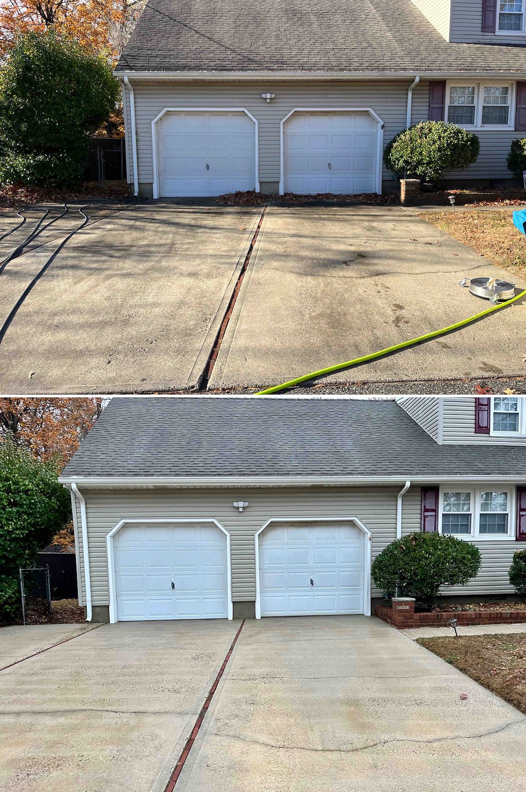 This Hazlet, New Jersey home had reached the point where mold, algae, moss, and lichen had taken over from the roof to the driveway. The homeowner was great to work with and appreciated that Above & Beyond Softwash could squeeze them in before temperatures dropped. What looked like a simple cleanup was actually a full-scale exterior restoration, and the homeowner later said they "couldn't believe their eyes" when we finished.