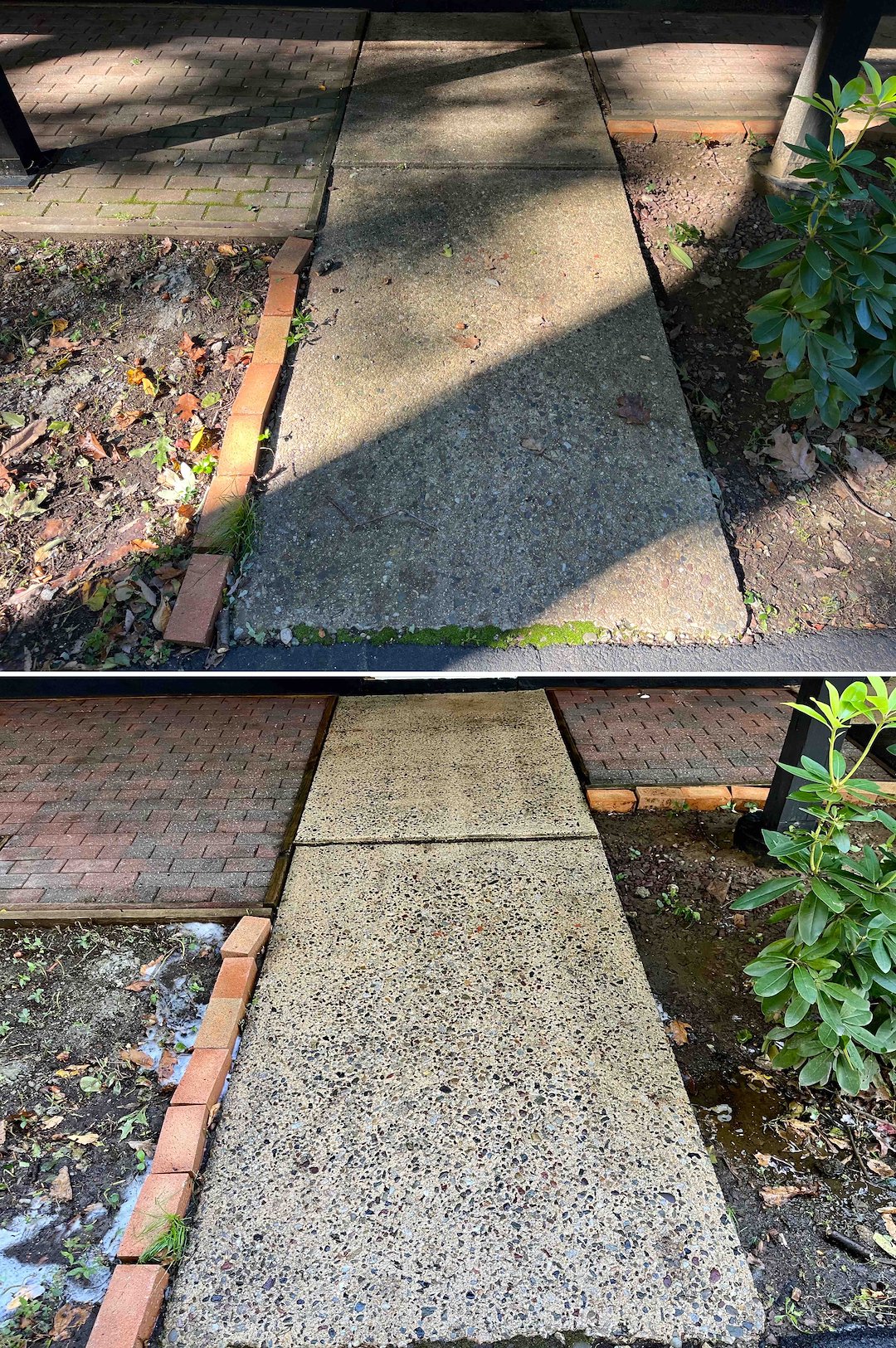 We were transparent about limitations, noting that soft washing and surface cleaning remove mold and dirt but will not dissolve cured concrete splatter from past construction. Setting honest expectations is part of how Above & Beyond Softwash operates.