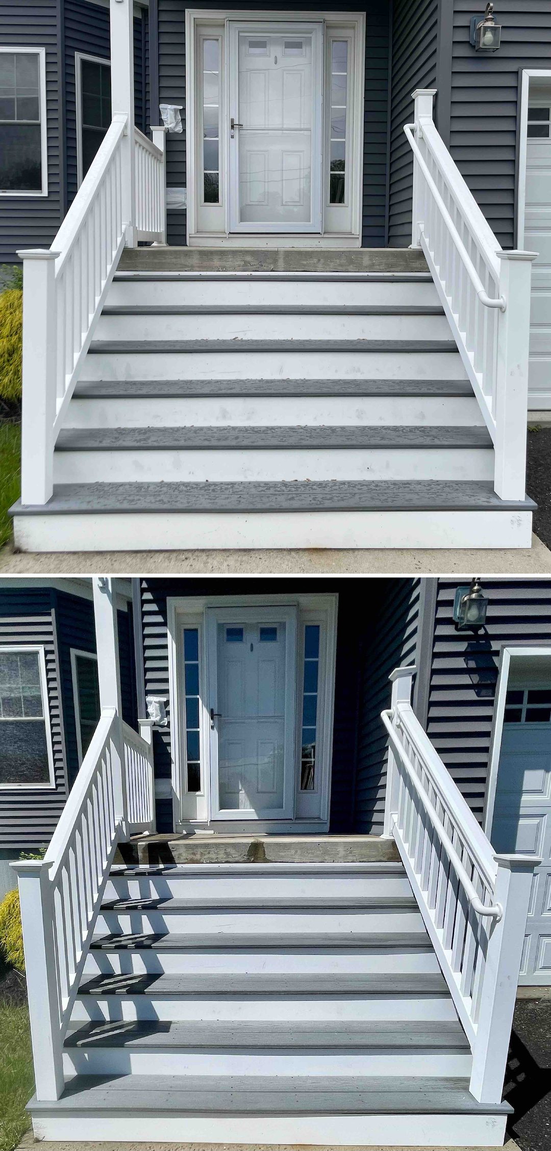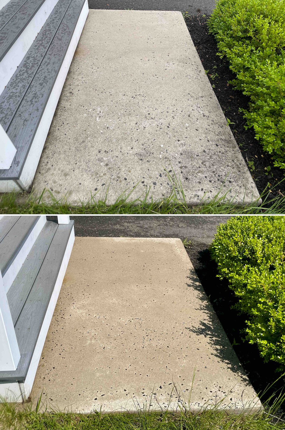 We finished by refreshing the front stairs, removing dirt and organic buildup so the home’s entrance was both cleaner and safer for guests. The homeowner appreciated the attention to safety and the care taken to avoid damaging the siding while still addressing the visible mold and algae.
