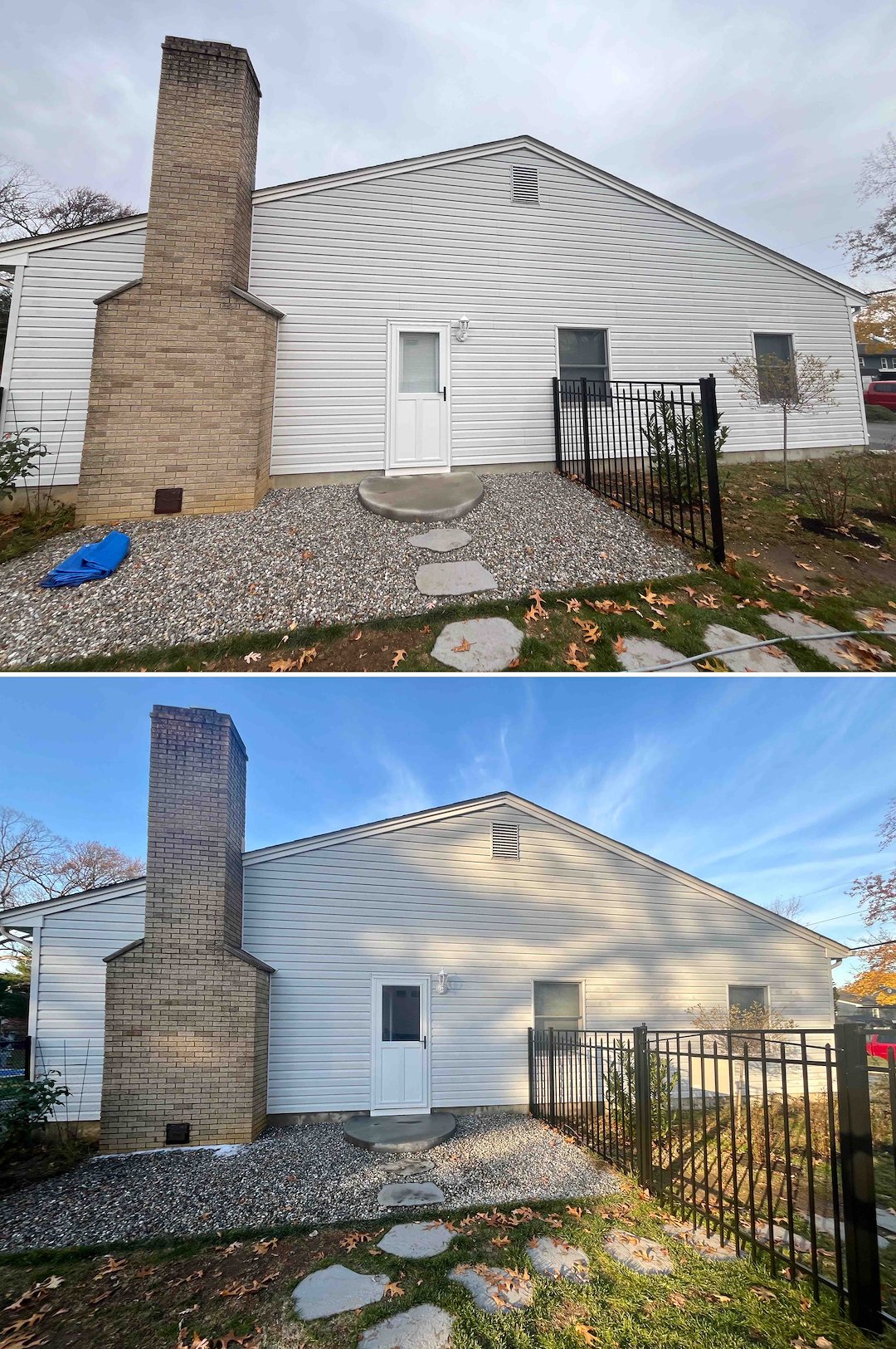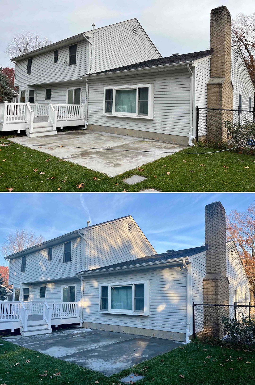 We recently completed a major soft wash project in Middletown, NJ for a homeowner whose composite deck, stairs and vinyl railings had turned into a slippery, green eyesore. The job combined a composite deck restoration, a two-story vinyl house wash, gutter blowout, plus a concrete and chimney refresh. The homeowner told us we lived up to the name Above & Beyond, and that was exactly the result we aimed for.