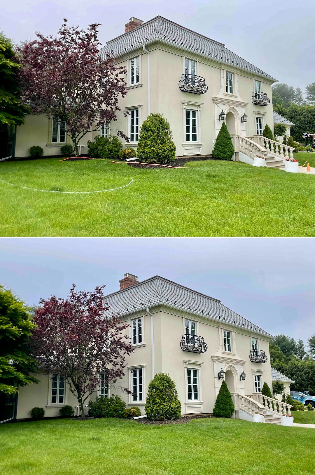 This Soak-Neutralize-Rinse cycle ensures that the roof and stucco are effectively sterilized while high-value gardens remain healthy and vibrant. That level of technical care is why many Rumson homeowners choose Above & Beyond Softwash for slate roof washing and full exterior cleaning, rather than a generalist. If you own a slate roof in Rumson, NJ, consider a specialist who understands that preservation is the only goal, and who coordinates roof, stucco, hardscape, and plant protection into a single, careful plan. Give us a call. You'll be glad you did.