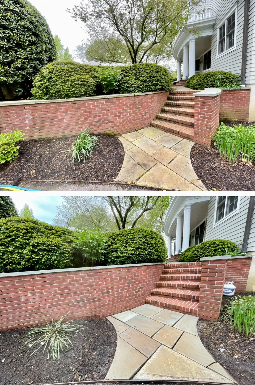 Rumson Estate Restoration: Irrigation Rust Elimination, Red Brick Deep Cleaning, and Bluestone Patio Rejuvenation