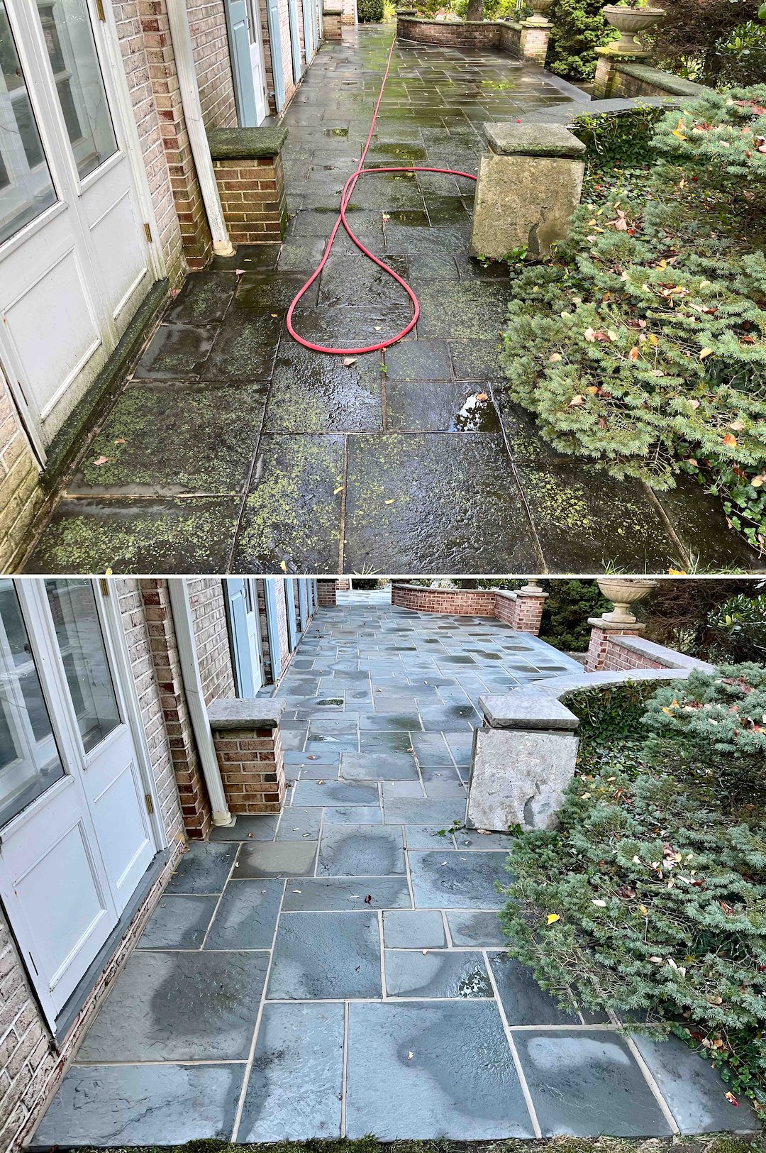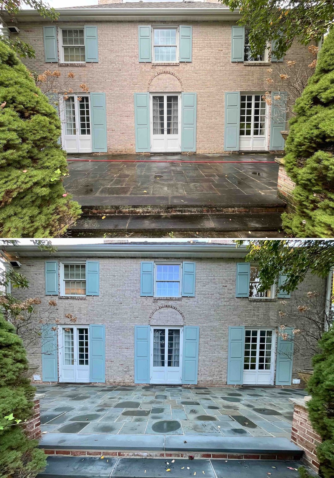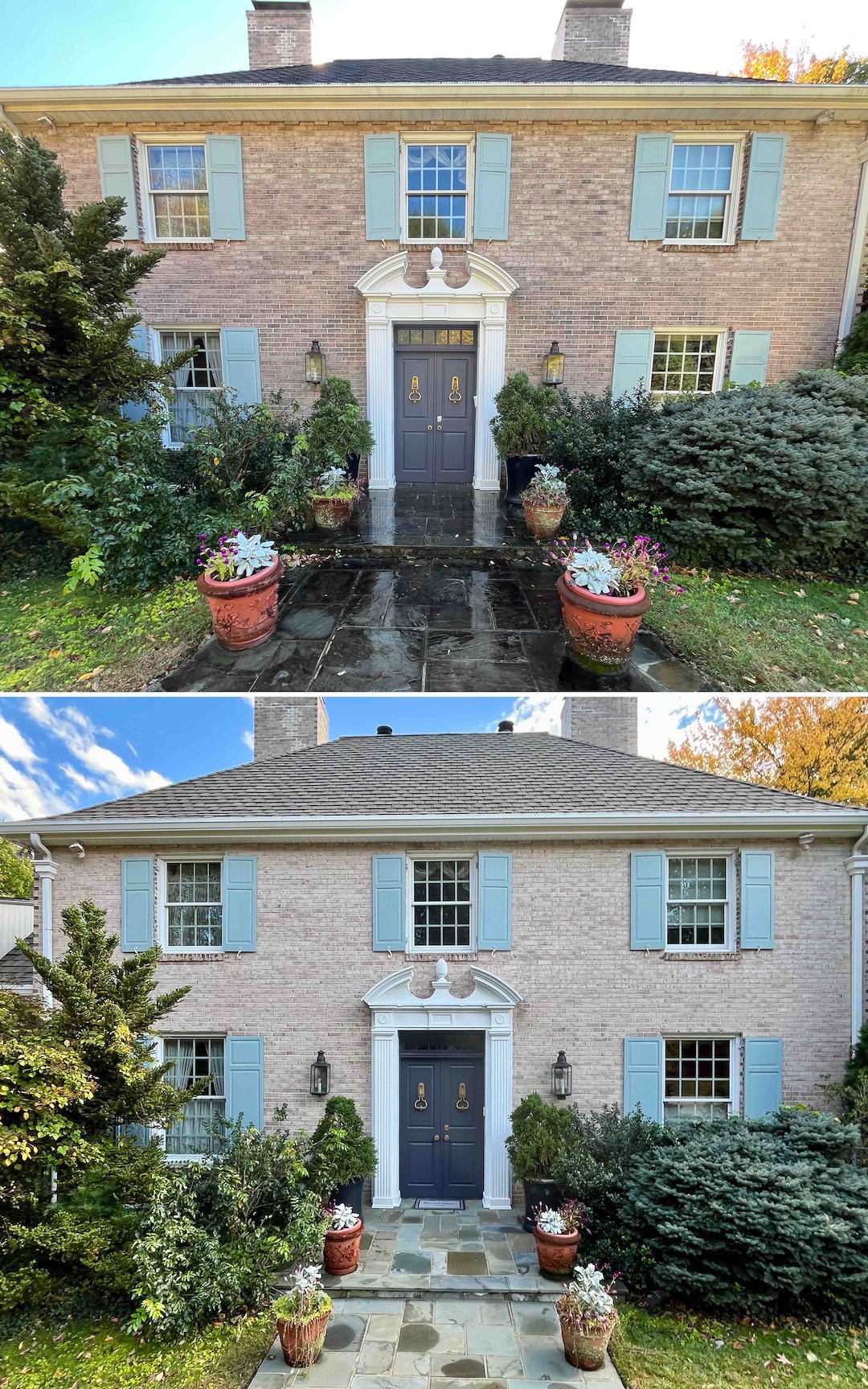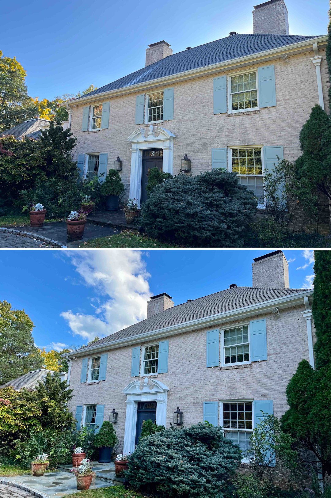 On a grand Rumson, NJ estate, Above & Beyond Softwash completed a full exterior restoration that went far beyond a standard house wash. Years of shade had turned the property into a living example of how moss, bacteria, and old ivy can steal an estate's identity. The roof, siding, bluestone walkways, and detailed outdoor surfaces all needed careful, expert attention to bring the home back to its intended look.