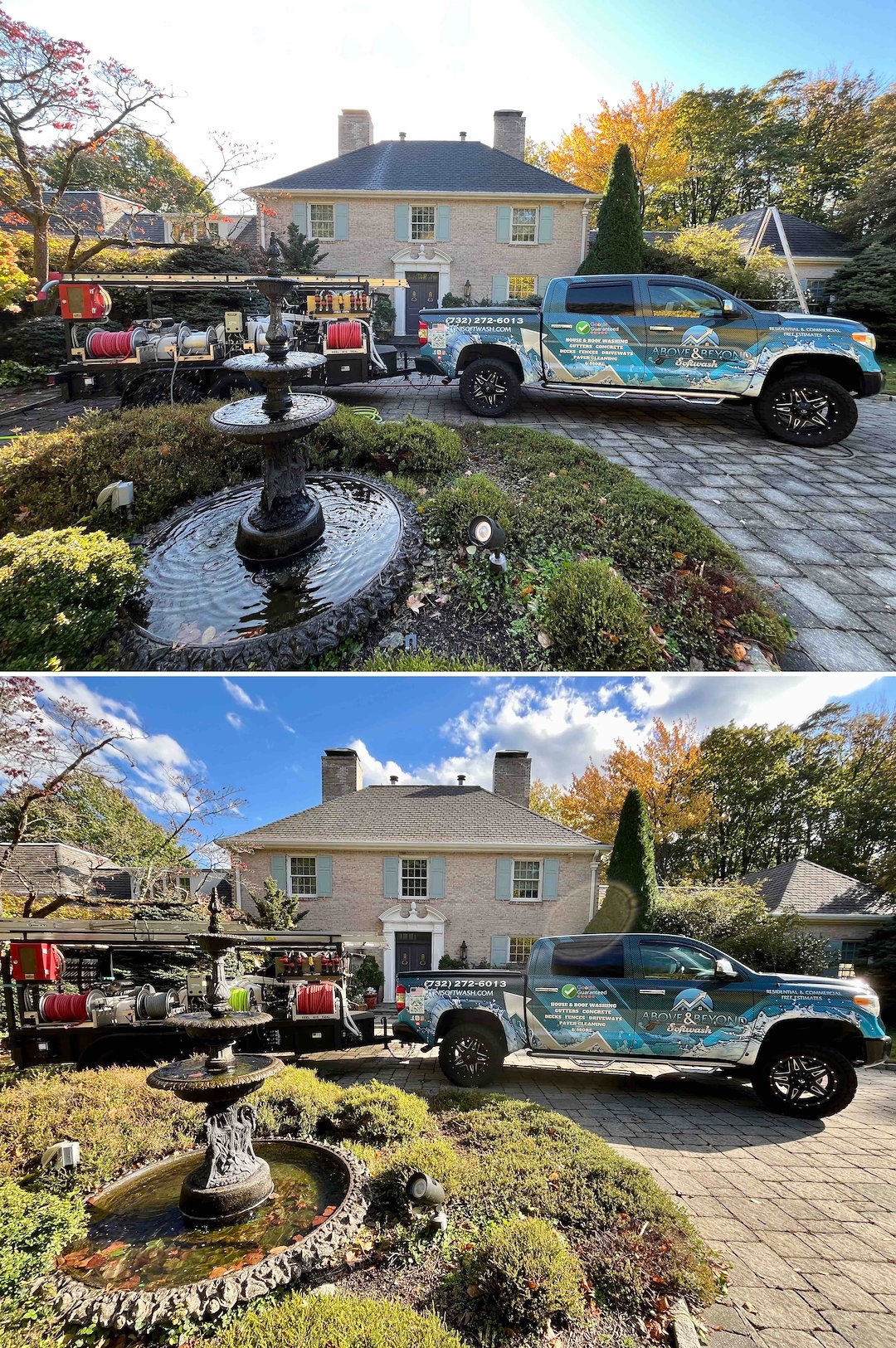 The homeowner’s reaction said it all. They were speechless, admitting they had forgotten how vibrant the estate was meant to be, and they immediately signed our Seasonal Maintenance Agreement. In shaded environments like Rumson, waiting for mold and bacteria to reappear is a losing game. An annual maintenance plan resets the biological clock each year, helping protect shingles, stone, and curb appeal before damage starts.