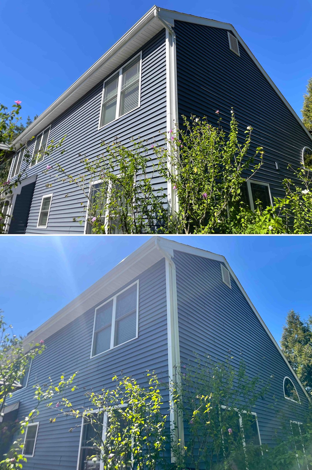 Todd's work was excellent. He arrived promptly for both the estimate and the day of work, and that's very important to us when someone values our time. And the job took exactly how long he had said it would. We have many plants and trees along the house and deck, and Todd took the extra time and effort to protect and rinse them as if it were his own home. That attention to detail shows his company really does go above and beyond. My house is so clean, the walkway looks completely different, and my not-so-white trim is white again. We highly recommend Todd and Above and Beyond Sottwash!